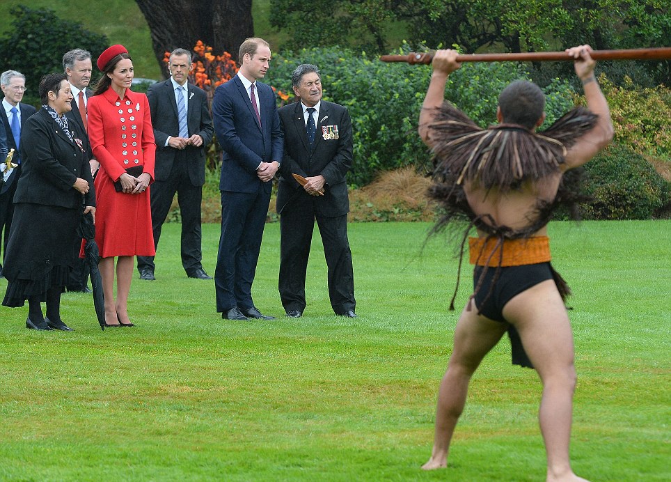| Cặp đôi Hoàng gia xem màn biểu diễn của chiến binh Maori. Ảnh: REX. |