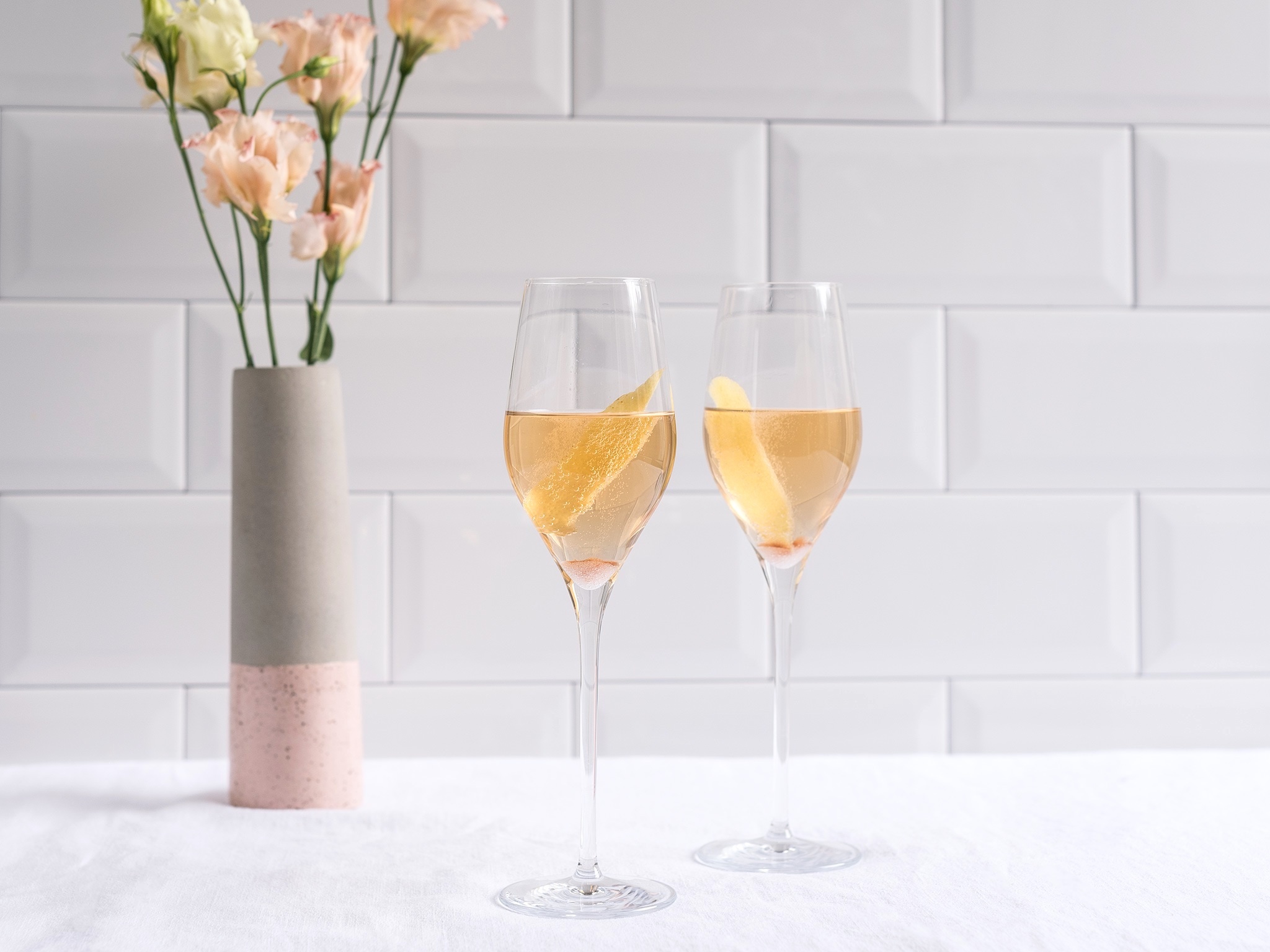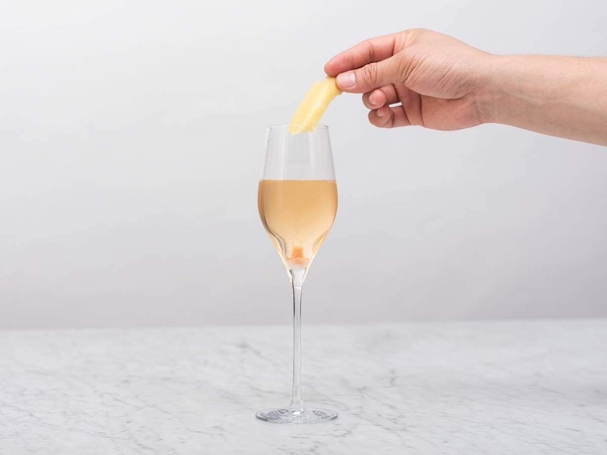 - Vắt vỏ chanh lên ly để tiết ra tinh dầu, thêm vỏ vào ly và phục vụ.