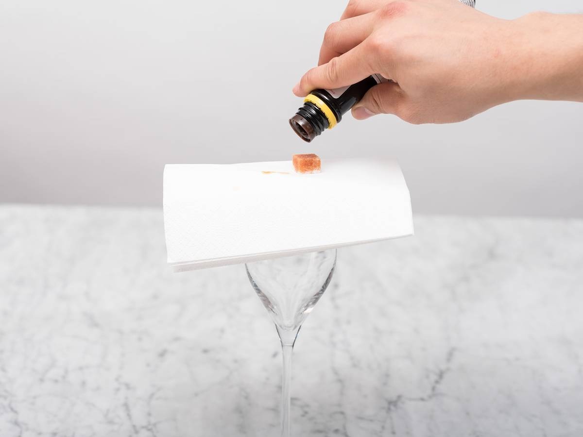 - Nhỏ giọt rượu đắng angostura lên khối đường viên.