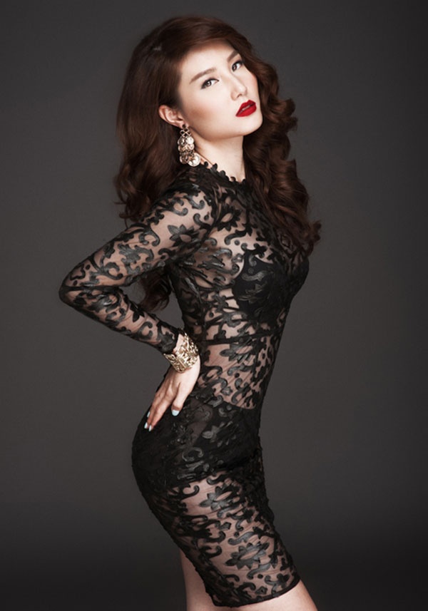 | Hình ảnh gợi cảm của cô với kiểu ren đắp hoa trên nền vải trong suốt. |