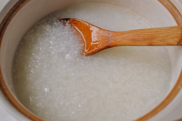 | Vo gạo, để ráo nước, đổ vào một túi nilon và đưa vào ngăn đá để ít nhất 8 tiếng. Nên chuẩn bị từ hôm trước. |