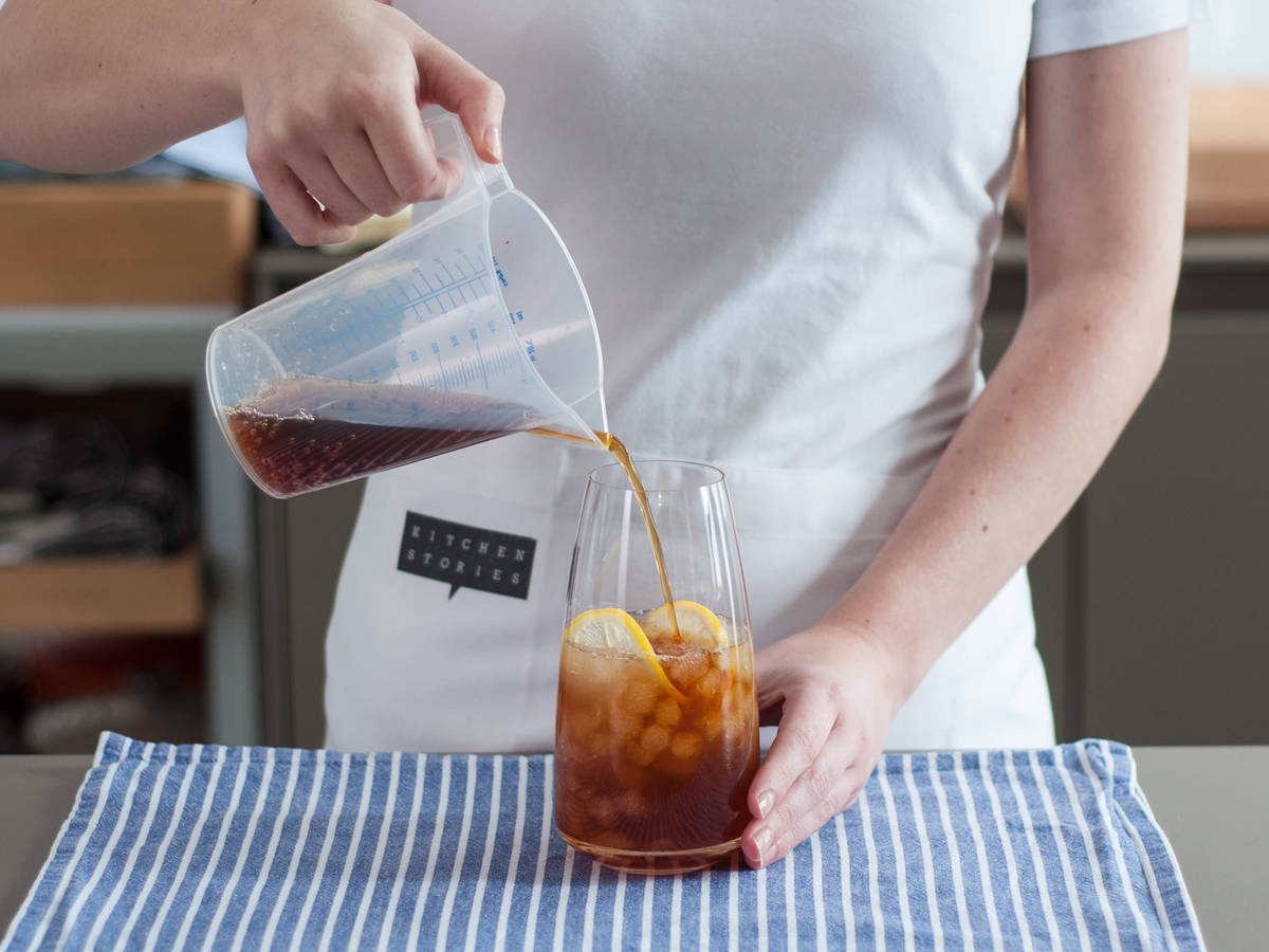 - Thêm phần nước còn lại, chuyển vào tủ lạnh và ngâm trong khoảng 4 đến 8 giờ đồng hồ, tùy thuộc vào loại trà và độ đậm đà mong muốn bạn.