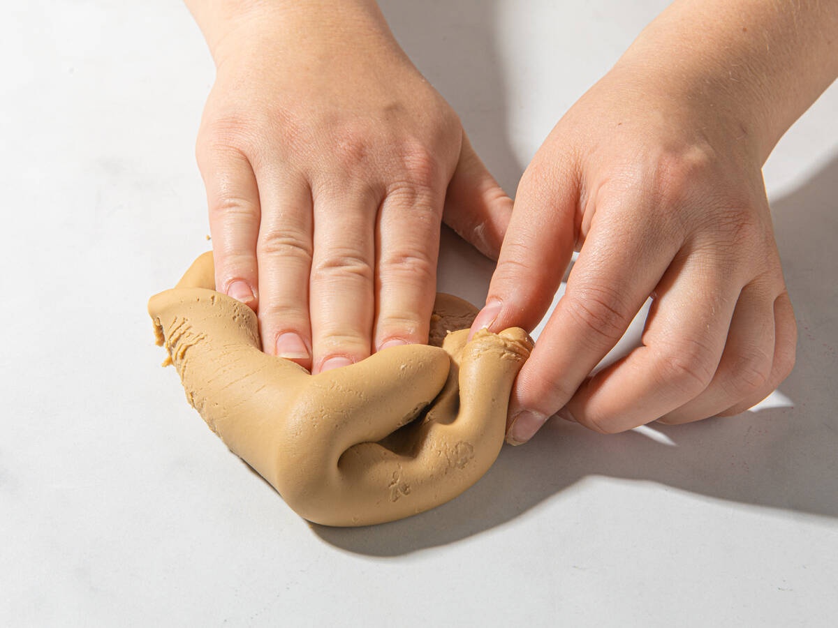 - Khi bột đã nguội, hãy đặt lên mặt phẳng sạch và nhào đến khi bột mịn.