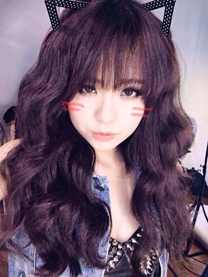 Tóc mái thưa, uốn sóng nhẹ nhàng đúng công thức của một hot girl. |