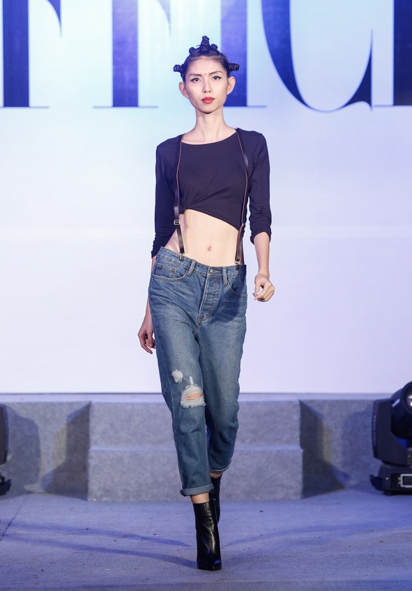 | Thời trang thập niên 1990 quay về với sự tối giản. Phong cách đơn sắc hình thành. Màu xám, trung tính được ưa chuộng. Người mẫu Thùy Dương trình diễn bộ cánh mang đậm phong cách phóng khoáng của dân thành thị. |