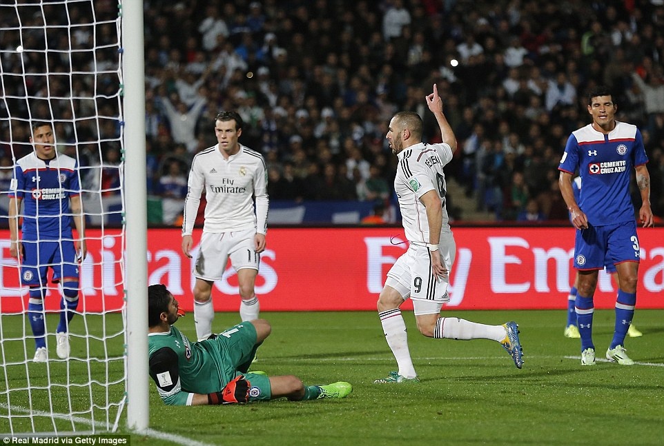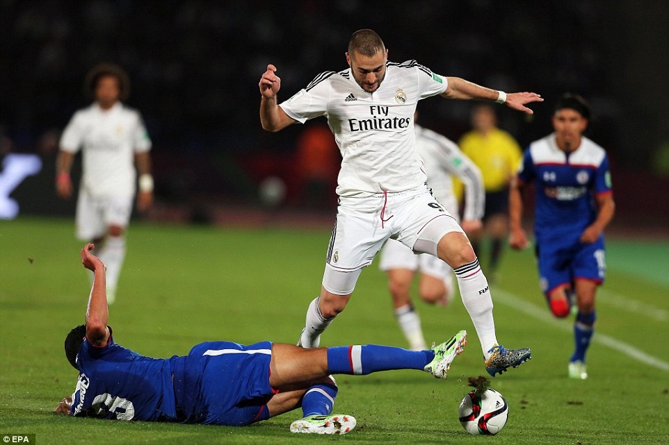 | Ngay khi trận đấu vừa diễn ra, Benzema đã có pha đánh đầu chuyền bóng rất đẹp tạo điều kiện cho Ronaldo ghi bàn mở tỷ số. Tuy nhiên, siêu sao người Bồ Đào Nha lại không khuất phục được tài năng của thủ thành bên phía Cruz Azul. Ít phút sau, đến lượt Benzema uy hiếp khung thành đối phương bằng pha dứt điểm quyết đoán từ ngoài vòng cấm. |