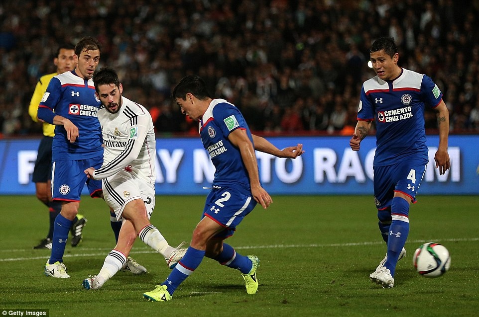 Đội hình thi đấu: Real Madrid: Casillas, Carvajal, Pepe, Ramos (Varane 65’), Marcelo, Kroos (Khedira 73’), Isco (Jese 76’), Illarramendi, Ronaldo, Bale, Benzema. Cruz Azul: Corona, Pinto, Rodriguez, Dominguez, Torrado, Pavone (Barrera 65’), Gimenez (Fabian 65’), Rojas (Valadez 76’), Flores, Bernardello, Formica. |