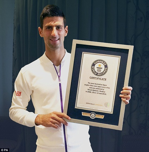 | Novak Djokovic nhận kỷ lục tay vợt giành chức vô địch nhiều nhất tại giải Úc trong kỷ nguyên mở rộng (5 lần vào các năm 2008, 2011, 2012, 2013 và 2015). |