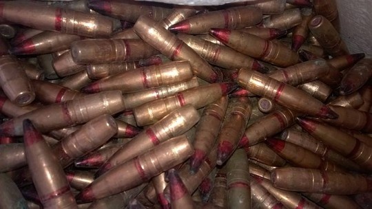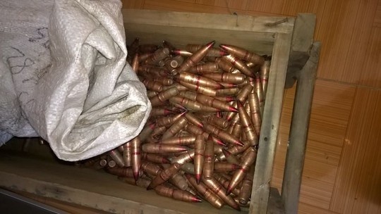 | Gần 500 đầu đạn được chứa trong thùng gỗ bị CSGT phát hiện. |