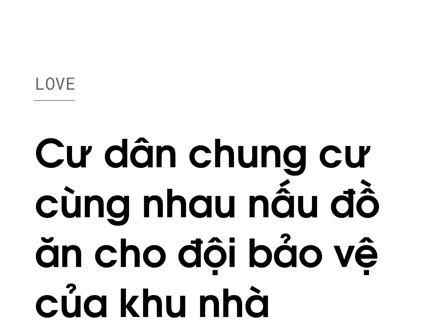 Một tình nguyện viên của chung cư vô tình bắt gặp nhân viên bảo vệ phải ăn cơm trắng cùng nước tương suốt 3 ngày liền. Cô quyết định kêu gọi cư dân trong khu nhà thực hiện một dự án nhỏ mang tên Bếp Vui Vẻ để hỗ trợ đồ ăn cho đội bảo vệ trong thời điểm này.