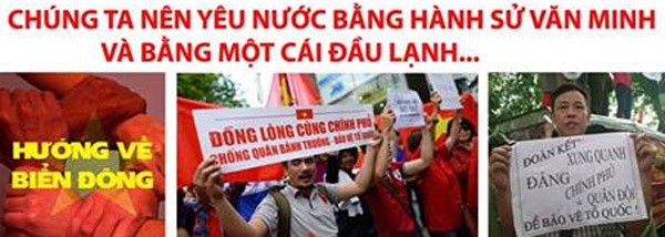 | Những hình ảnh về bảo vệ chủ quyền vẫn tiếp tục được lan truyền. Tuy nhiên, giờ đây, cộng đồng mạng Việt thêm thông điệp về cách thể hiện lòng yêu nước. |