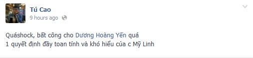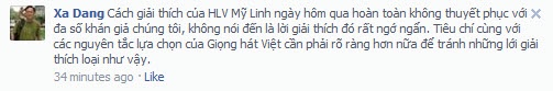 Nick Tú cao thậm chí còn bày tỏ quan điểm rằng đây là quyết định đầy toan tính và khó hiểu của chị Mỹ Linh. Còn nick Như Thủy Nguyễn viết: “Thật sự rất bất ngờ và buồn. Nhưng có lẽ ai cũng có cái lý cho quyết định riêng cuả họ.... Dù có như thế nào thì chị luôn là My Idol trước và sau The Voice”.