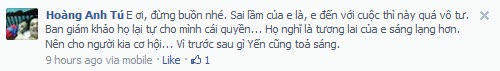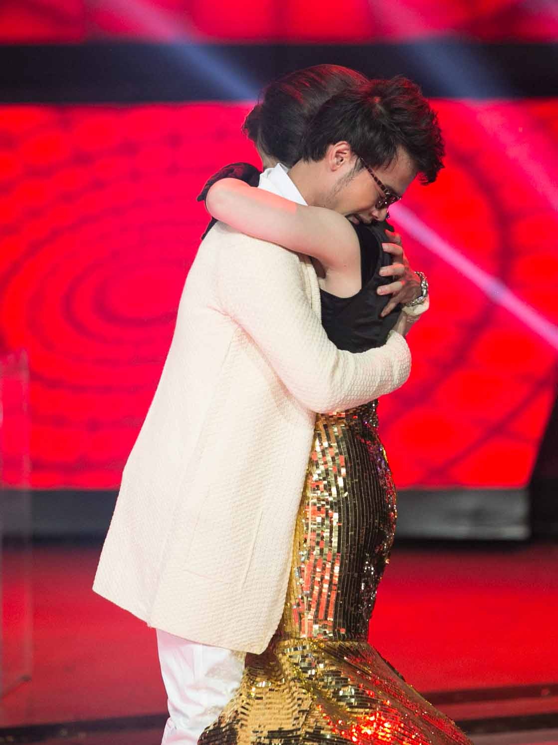 | Dương Hoàng Yến gục khóc trên vai Thái Quang sau khi nghe kết quả. |
