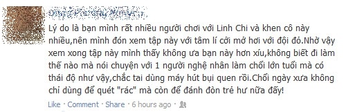 Và mọi chuyện bắt đầu khi cô nộp sản phẩm của mình để người nghệ thân có thể kiểm duyệt và cấp quyền đi tiếp. Khi nghe người này nhận xét cây chổi không được thực hiện đúng chuẩn nên bắt buộc phải làm lại, Linh Chi đã tỏ rõ vẻ thất vọng và hụt hẫng. Cô nói trong nghẹn ngào: “Con lạy chú, con không thể làm tốt hơn được nữa. Con làm văn phòng, không phải là người làm chổi. Con chỉ làm cái chổi quét được. Vậy thôi!”