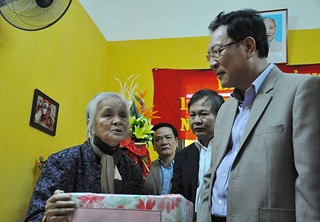 | Bộ trưởng Bộ GD-ĐT Phạm Vũ Luận thăm, tặng quà lớp học tình thương của bà giáo Hồ Hương Nam (81 tuổi) chiều 15/11. |