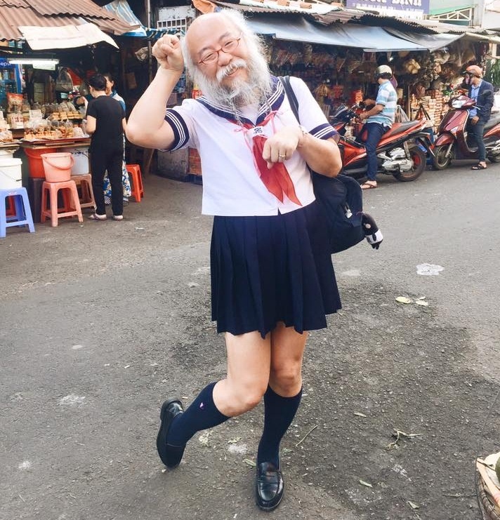Mới đây, hình ảnh cụ ông Hideaki Kobayasi xuất hiện ở TP HCM nhanh chóng thu hút hơn 6.000 like (thích) trên Facebook. Nhiều dân mạng nhận ra ông chính là người mệnh danh như "Sailormoon Man" của Nhật Bản.