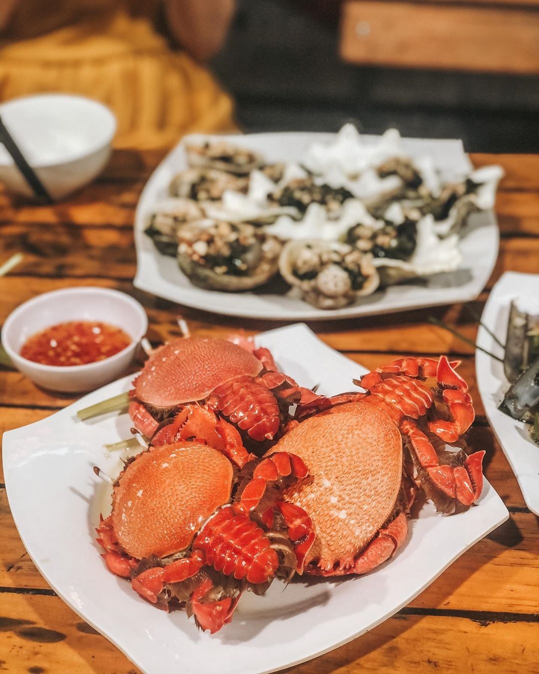 Cua huỳnh đế là món đặc sản nổi tiếng nhất nhì đảo Lý Sơn. Bạn có thể tìm thấy loại cua đặc biệt này ở khu chợ đêm. Mặc dù giá khá cao nhưng thịt cua chắc, gạch thơm, béo ngậy, có thể chế biến với các món như hấp, nướng than, rang me... sẽ không làm bạn thất vọng. Nếu có điều kiện, bạn nên thử qua loại hải sản hảo hạng này một lần. Ảnh: Knguyen, _tabi, van_kemm. |