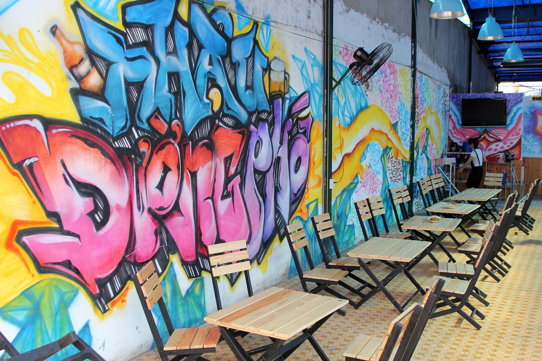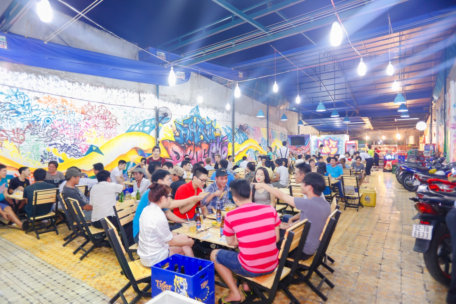 Tọa lạc tại số 125 - 127 đường Nguyễn Thị Thập (Q. 7) là một quán ăn với cái tên gợi sự thoáng đãng: Nhậu Đường Phố. Đúng như cái tên, không gian quán rộng rãi, với bức tường hai bên dày đặc các bức tranh graffiti nhiều chủ đề cùng hệ thống mái bạt có thể di chuyển.