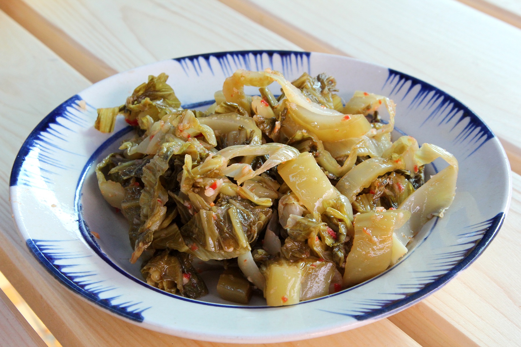 | Snack đặc chế và dưa cải chua, hai món khai vị được yêu thích của quán. |