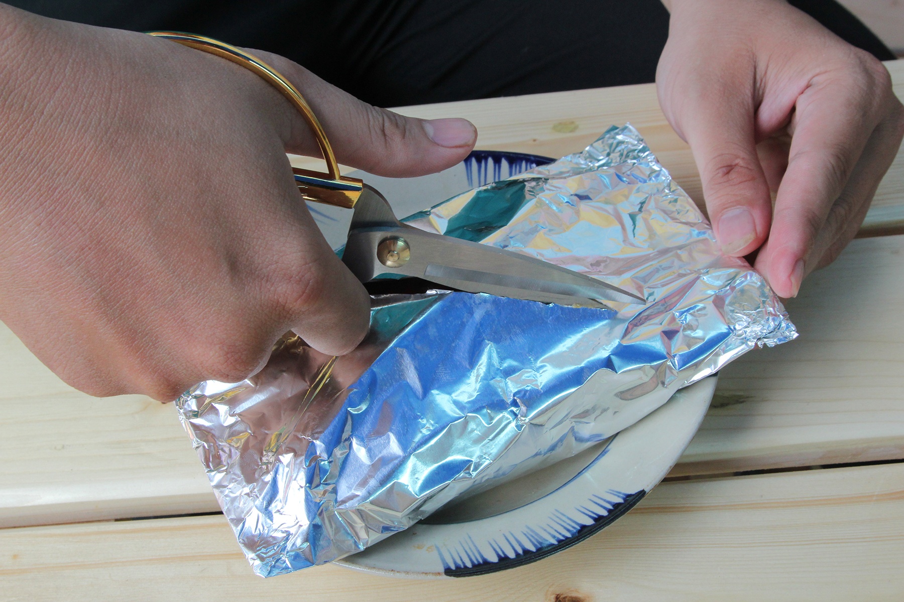 Quán dọn nguyên gói nên nếu đang nhâm nhi dỡ những món nướng khác, bạn cứ "giữ nguyên hiện trường", món ăn sẽ nóng sốt trong thời gian nhất định. Song rất ít thực khách thực hiện điều này. Ngay khi gói cua xuất hiện, những tiếng sột soạt của kéo cắt giấy bạc sẽ vang lên, làn khói thơm lừng sẽ lan tỏa, rồi con cua đỏ au đầy mời hiện ra.