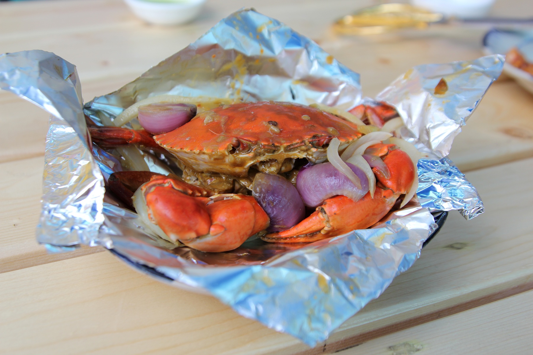 | Việc nướng gói trong giấy bạc cùng cách phối với món chấm lạ khiến cua nướng chao chiếm được cảm tình của khá nhiều thực khách. |