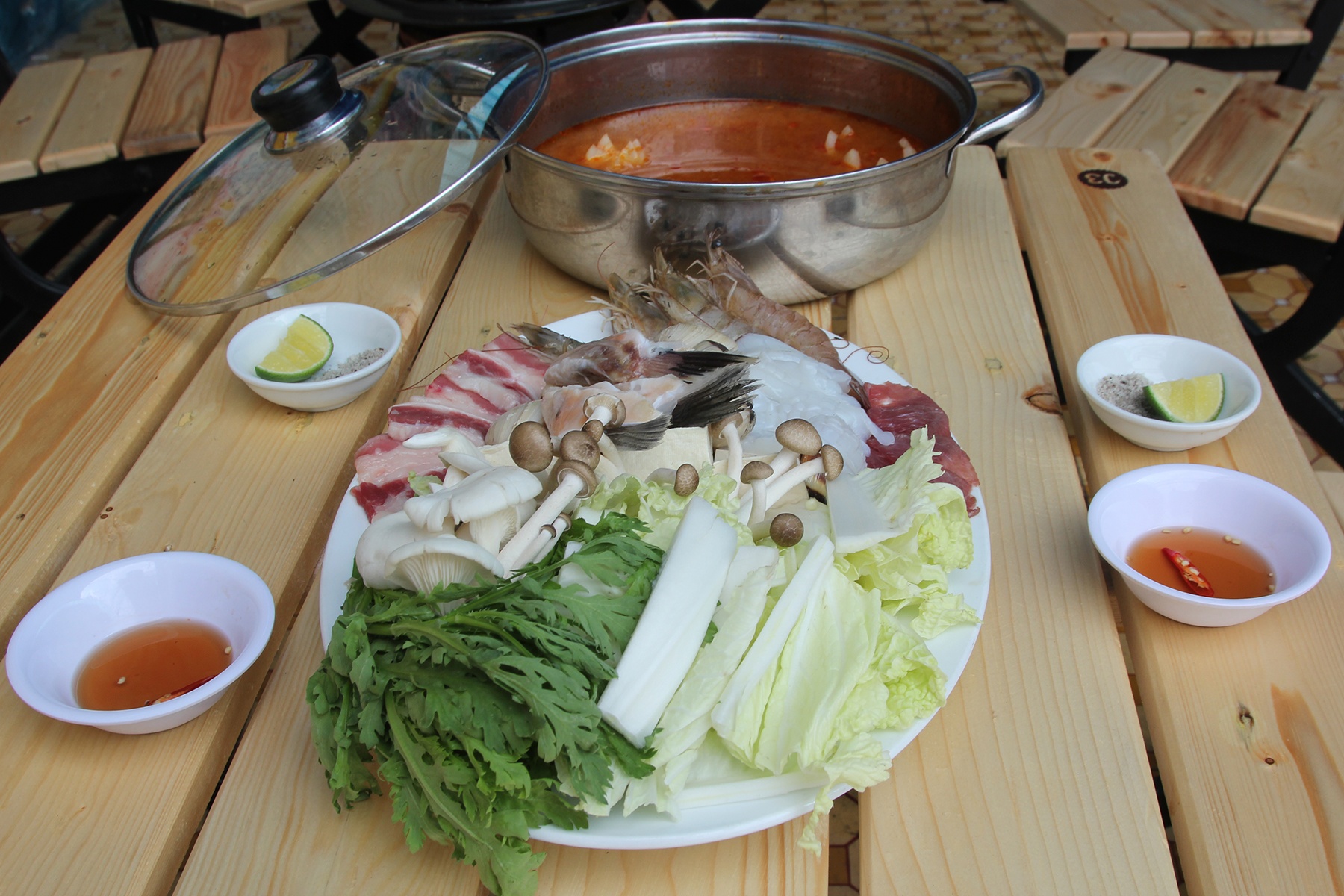 Quán chuyên phục vụ các món nướng và lẩu. Nguồn thực phẩm đặc biệt như bò Mỹ, đà điểu và những loại hải sản luôn tươi ngon. Đặc biệt cá biển ở quán được vận chuyển hằng ngày từ Phú Quốc nên tươi ngon và không chất bảo quản.
