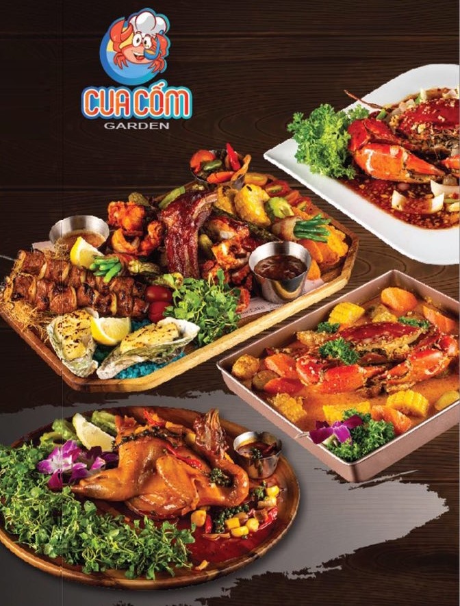 Ngoài ra, Cua Cốm Garden còn phục vụ nhiều món ăn hấp dẫn từ hải sản như tôm, mực, cá, ốc... Quán phục vụ từ 7h sáng đến 2h đêm, với 100 món ăn đa dạng. Đến đây vào buổi sáng, bạn có thể thưởng thức các món ngon từ bò như bò bít tết, bò né, bò kho sả nghệ - cơm trắng, cơm bò củ hành, bún tươi thịt bò tơ Tây Ninh.