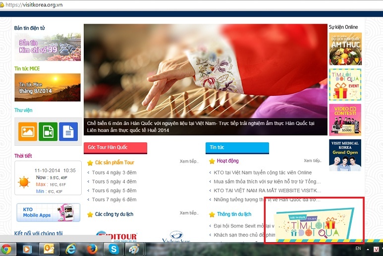 Nhằm hoàn thiện hơn website mới với rất nhiều cải tiến theo tiêu chí tiện ích, cập nhật, thân thiện hi vọng sẽ làm hài lòng mọi độc giả, cũng như bắt đầu cho hàng loạt các sự kiện sắp được tổ chức trên website, KTO tại Việt Nam tổ chức cuộc thi độc đáo mang tên Tìm lỗi - đổi quà. Giải thưởng của cuộc thi là 230 vé xem phim CGV toàn quốc dành cho thành viên đưa ra nhiều ý kiến và chỉ ra nhiều lỗi sai nhất.