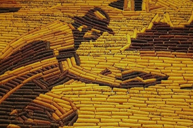 | Các tác phẩm nghệ thuật được trang trí bằng ngô trên tường cung điện. |