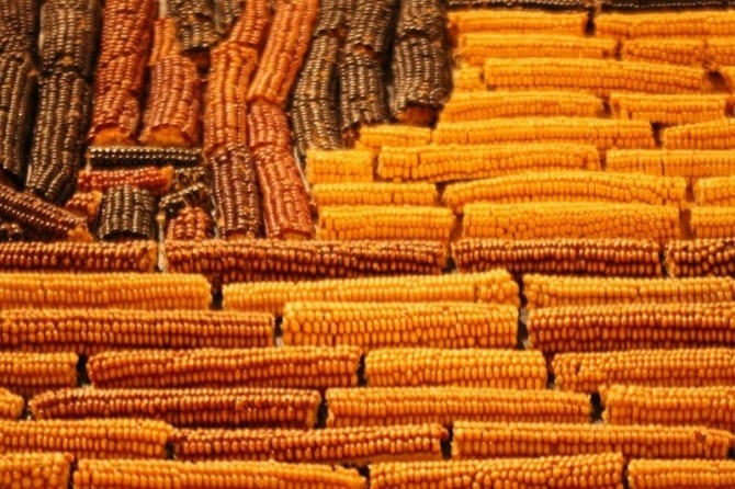 Các loại ngô đủ màu sắc được sử dụng để trang trí cung điện. |