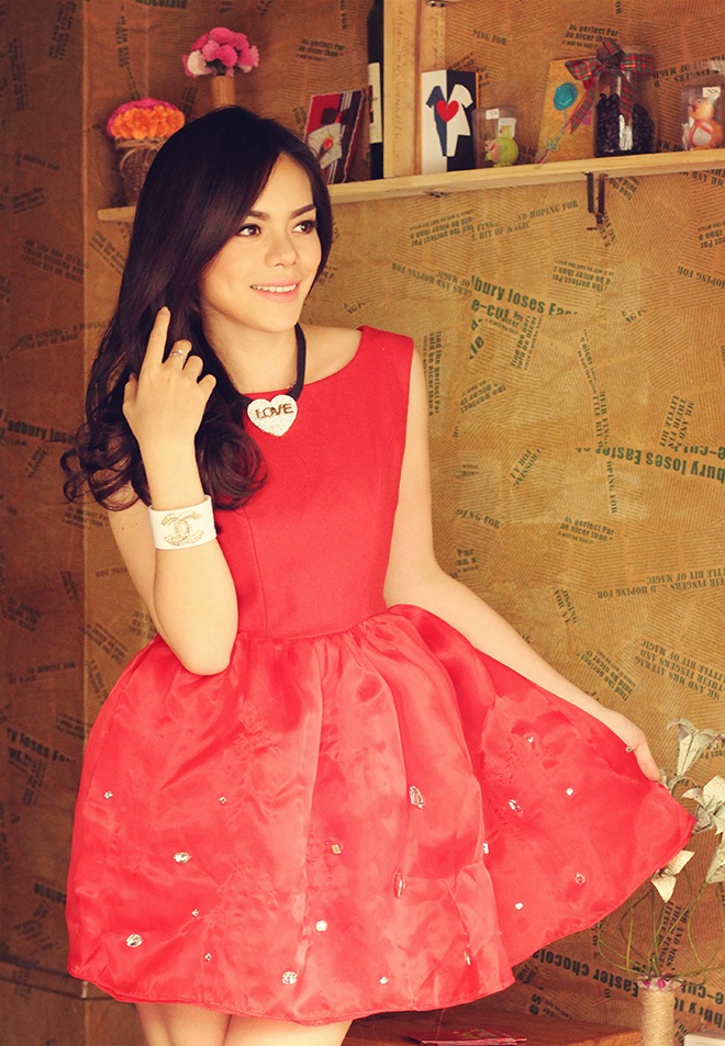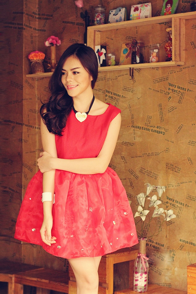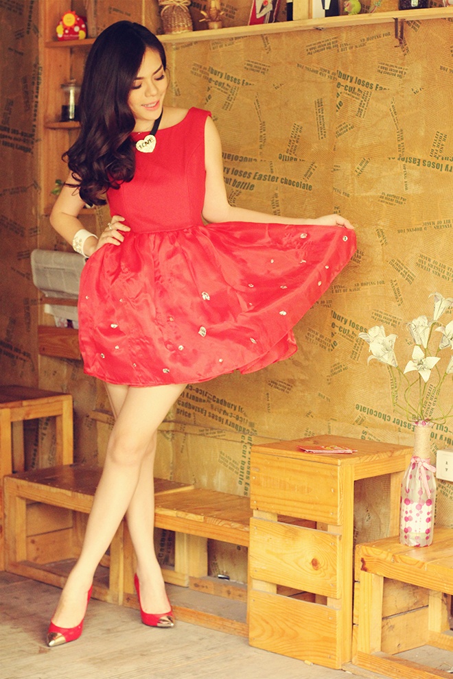 | Còn gì tuyệt vời hơn với sắc đỏ may mắn trong bộ đầm chữ A |