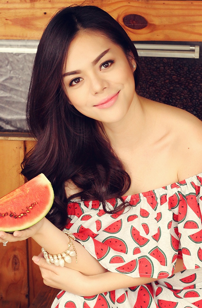 | Chiếc đầm maxi chất liệu cotton nhẹ nhàng họa tiết dưa hấu rực rỡ, kín đáo và duyên dáng rất hợp để bạn tiếp khách đến chúc xuân tại nhà. |