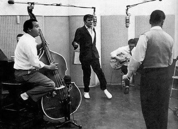 | Elvis Presley trong khi thu âm nhạc phẩm That's All Right. |