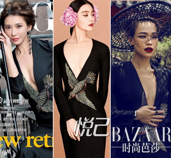 | Lâm Chí Linh, Phạm Băng Băng và Thư Kỳ đọ vẻ gợi cảm trong chiếc váy thêu thùa tinh tế gam màu đen và xẻ sâu ngực. |
