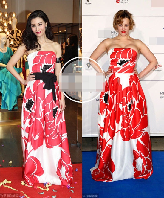 | Chiếc váy xanh hiệu DKNY được cả Châu Huệ Mẫn và Laverne Cox mặc khi đi tham dự sự kiện. |