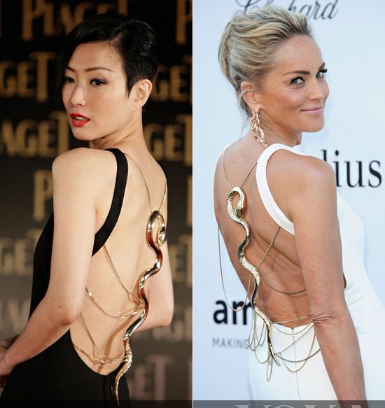 | Trịnh Tú Văn ăn đứt Sharon Stone vì tấm lưng nõn nà hơn hẳn. |