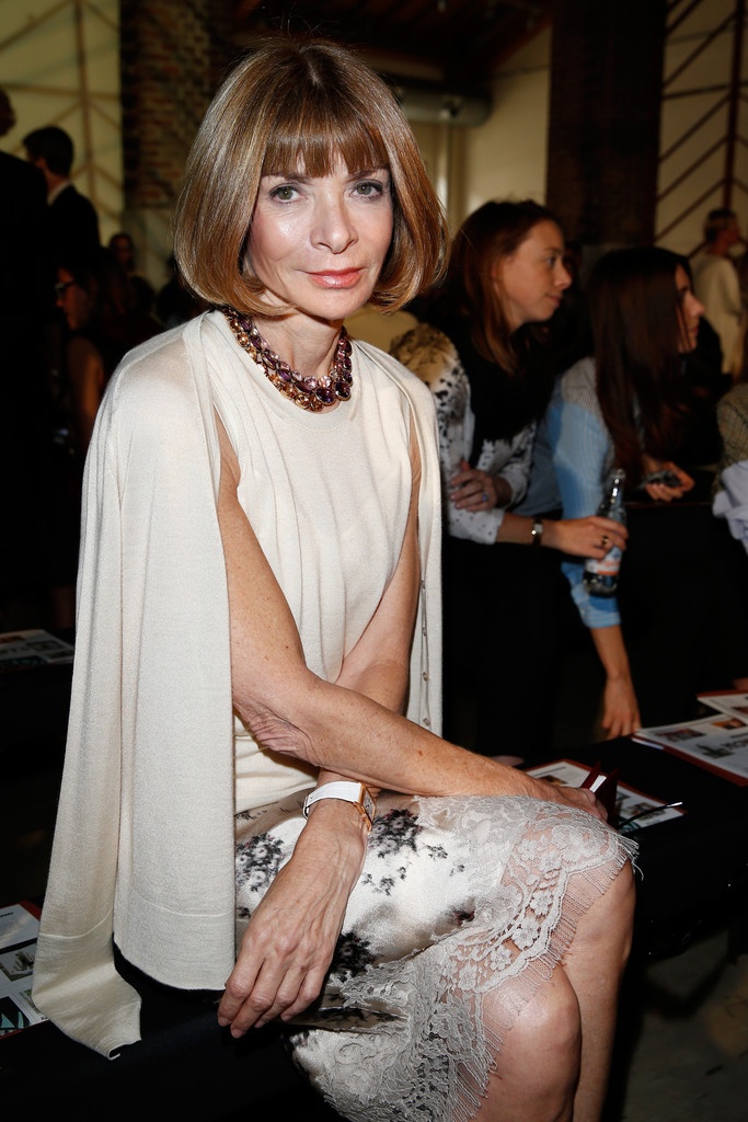 | Anna Wintour trên hàng ghế VIP tại tuần lễ thời trang Milan 2014. Ảnh: Style |
