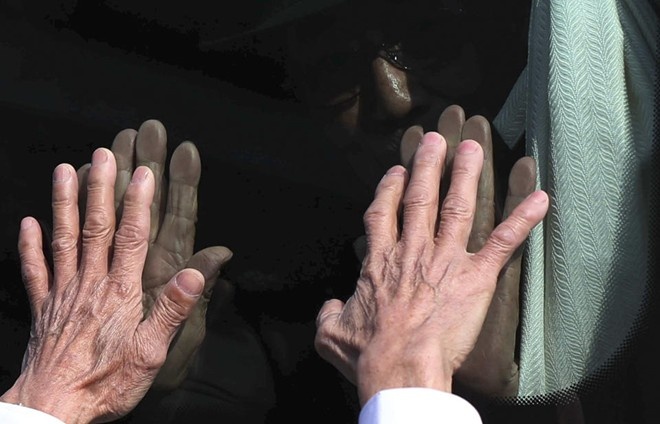 Nhiều người cố ấn chặt bàn tay vào kính của ôtô như cảm nhận hơi ấm của người thân trong cuộc hội ngộ cuối cùng của họ bởi mọi người đều đã già. Cuộc đoàn tụ là cơ hội hợp pháp duy nhất cho các gia đình ly tán do chiến tranh có thể gặp lại người thân trong bối cảnh căng thẳng giữa Triều Tiên và Hàn Quốc thường diễn ra. Ảnh: AP