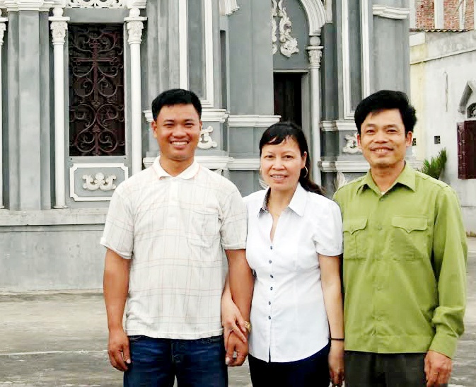 | Anh Vũ Văn Kỷ (bên trái) và bố mẹ Đỗ Quyên Quyên. |
