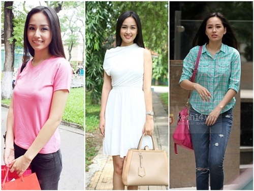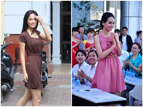 | Gu thời trang của người đẹp đã có nhiều tiến bộ. Tuy nhiên, tông trang điểm vẫn còn sơ sài, bị đánh giá là già hơn tuổi. |