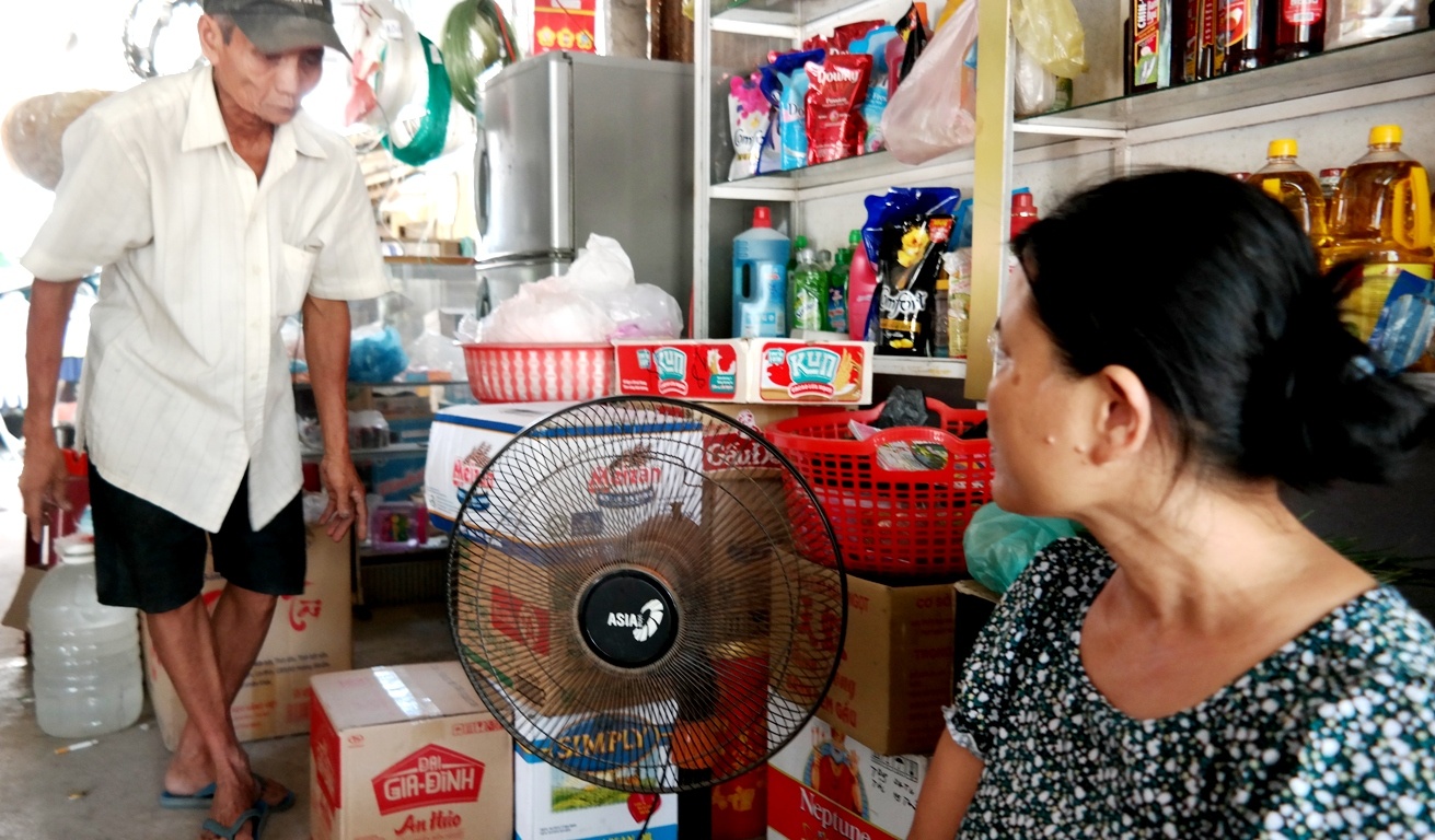 | Chị Mai và 2 con phải sống nương nhờ vào quán tạp hóa của ba mẹ ruột. Ảnh: Đoàn Nguyên. |
