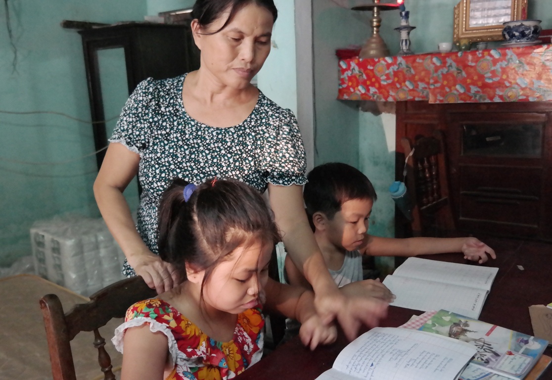 Con gái lớn của chị đang học lớp 3, còn cháu trai thứ 2 học lớp 1. Khác hẳn với khuôn mặt “bà lão” của chị, 2 người con đều sáng sủa và học giỏi. Từ lúc bệnh tái phát trở lại, chị đón hai đứa con về sống với mình ở nhà ba mẹ ruột.