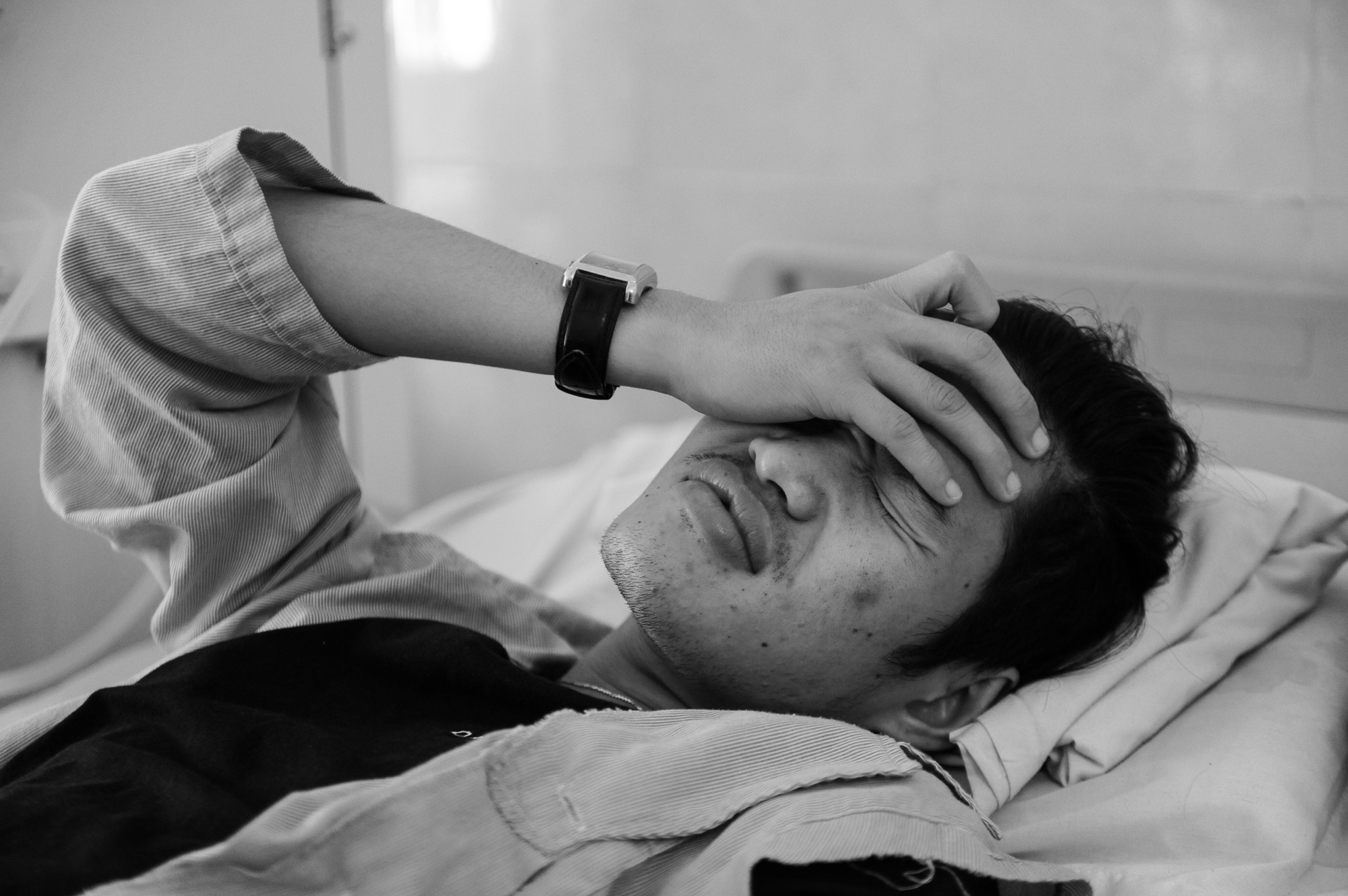 Cứ hai ngày một lần, Tân lại phải vào bệnh viện. Thời gian gò bó cùng sức khoẻ giảm sút khiến cậu không thể làm việc hay vui chơi như xưa. |