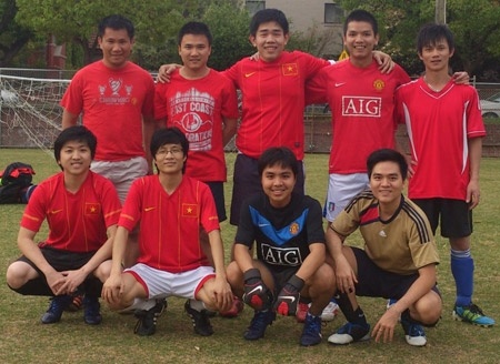 | Ngoài học tập, Phan Minh Đức (áo đen) còn rất thích bóng đá. |