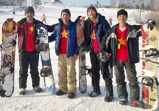 Trượt tuyết - môn thể thao ưa thích của du học sinh Việt vào mùa đông . Ảnh: NVCC. |