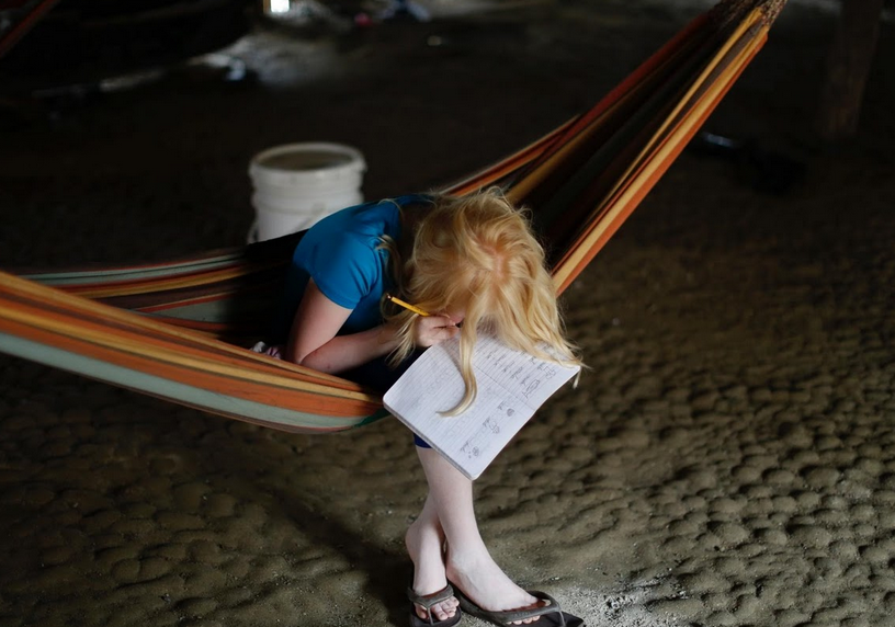 | Yalsseth Morales, 11 tuổi, trong lớp học. Những trẻ bạch tạng vẫn học tập như các bạn bình thường khác. |