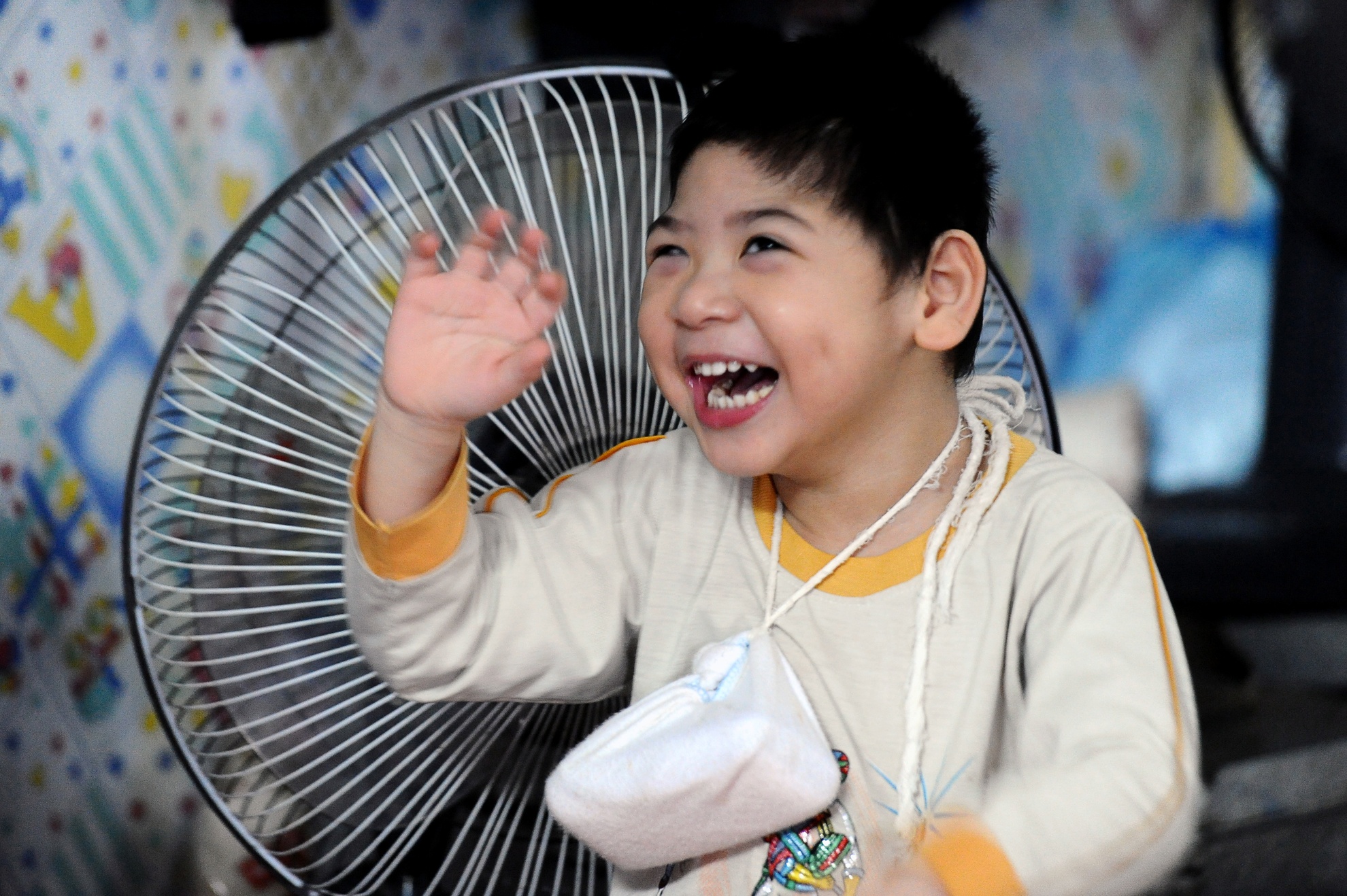 | Quang Anh bị bại não ngay khi lọt lòng, cả ngày chỉ ngồi cười rồi lại khóc. |