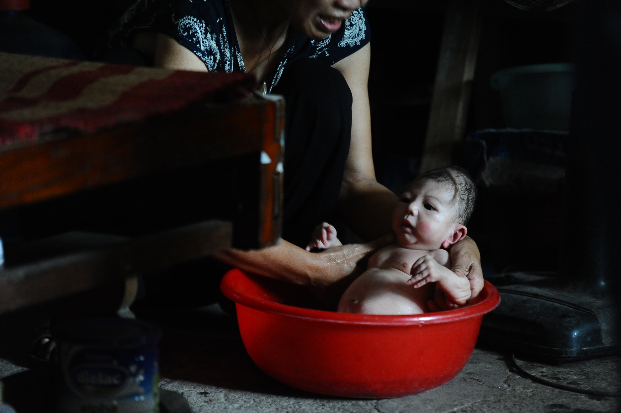 | Do phải chăm nhiều trẻ cùng lúc nên các bảo mẫu cũng chỉ có thể tắm qua cho cháu này để còn đến lượt cháu khác. |
