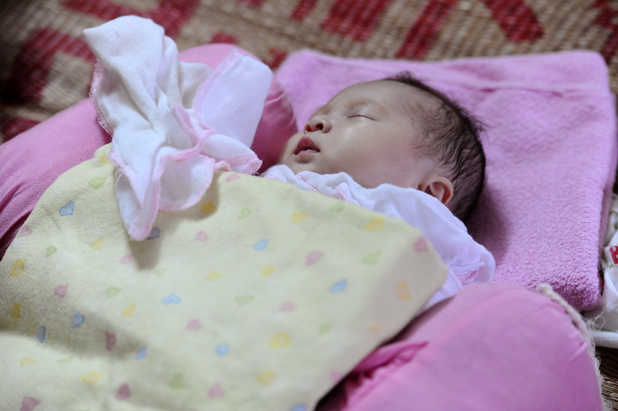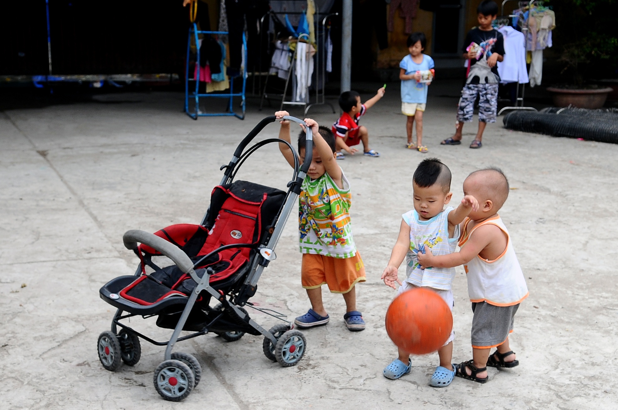 | Hình ảnh được phóng viên Zing.vn ghi lại tháng 9/2012, lúc này bé Thái An và Nghĩa Anh trong ảnh mới được 3 tháng tuổi. Cả hai vừa sinh ra được một tuần thì phải vào chùa ở. Tại chùa có nhiều bảo mẫu đón nhận và chăm sóc các em, tuy nhiên một "mẹ" lại phải chăm nhiều bé nên không tránh khỏi sự vất vưởng. |