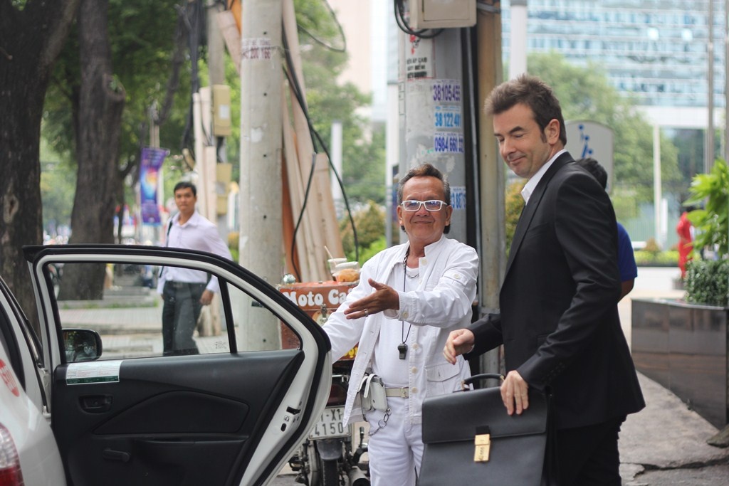 | Sau vài câu giao tiếp bằng tiếng Anh là ông Hiền kiếm được khách nước ngoài đi taxi. Ông trịnh trọng mời khách lên xe. Ông cho biết, trước đây từng lái xe bus, xe taxi, sửa xe... nên có nhiều kinh nghiệm. |